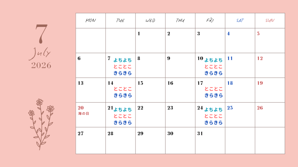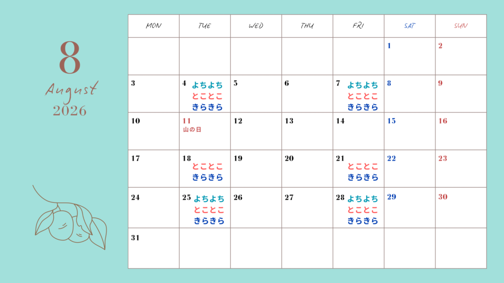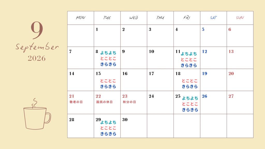 ★ 2026年4月~9月 レッスンカレンダー ★